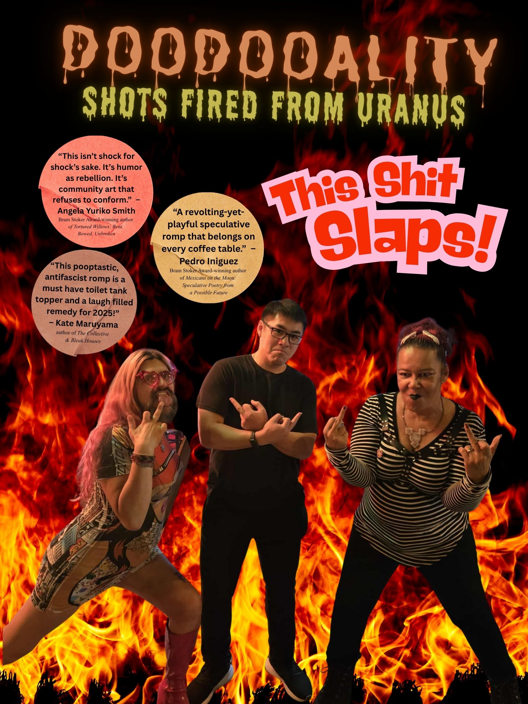 “Doodooality: Shots Fired from Uranus is a chaotic, joyful, fully committed plunge into the absurd as a metal-karaoke fever dream where poetry, parody, and pure bathroom anarchy collide. This collection doesn’t tiptoe around its premise; it sprints into it face-first, skid-marks and all. Here, sentient feces rise to cultural prominence, philosophers argue about dingleberry diplomacy, and every page asks you to surrender to the sheer audacity of it all.
